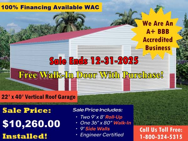 Order Your New Enclosed Metal Garage Today At: https://metalcarportdepot.link/TOL22x31x9-NJ-NY-OH-PA-WV-ONLY-PRICING